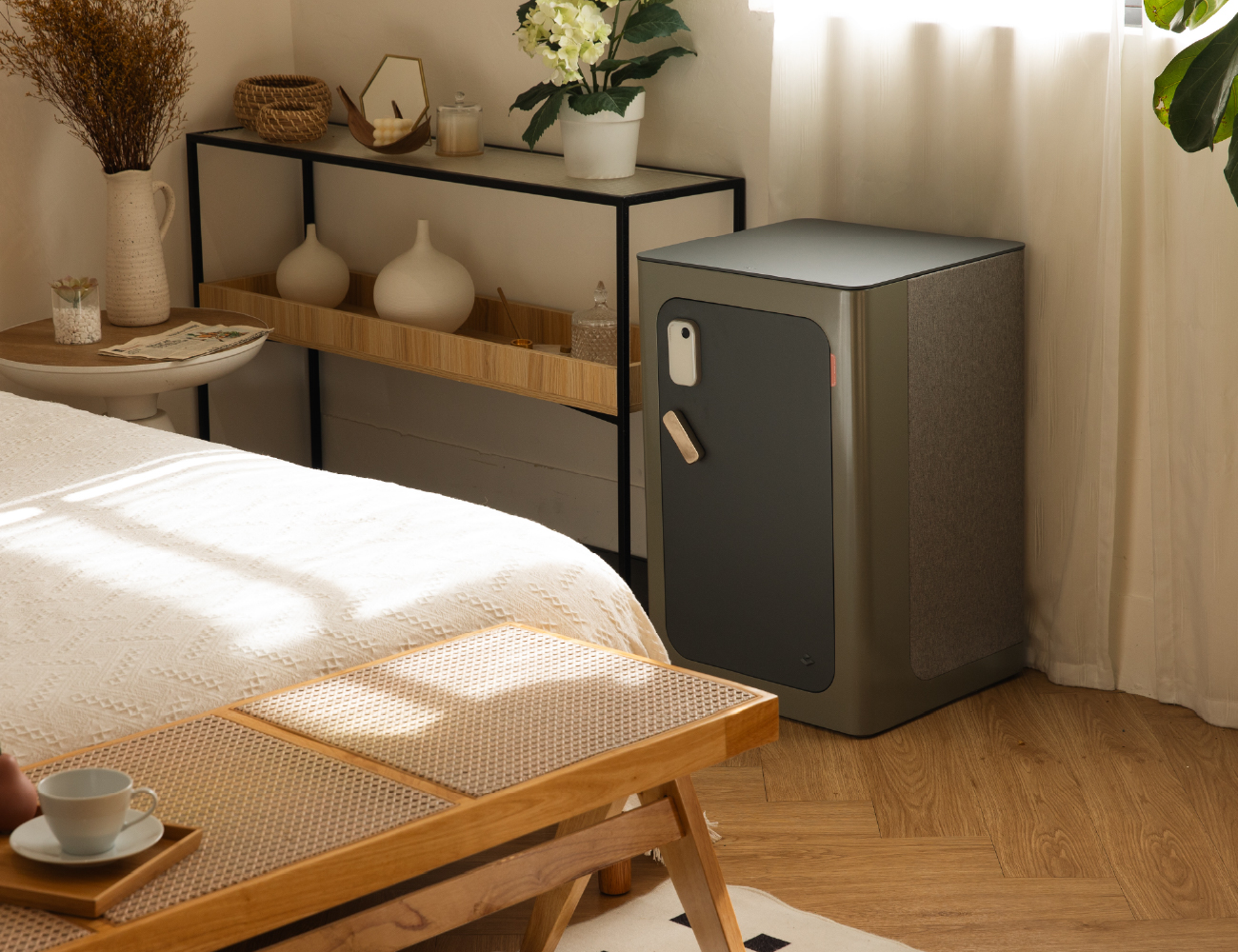 台灣潮濕氣候常導致珍貴的相機鏡頭、珠寶或收藏品發霉毀損。因此ESD提供 10mm 鋼板精密防護的同時,內建主動式防潮主機,確保收藏環境恆久乾淨 。外觀延續系列的圓潤家具化語彙,讓保險櫃不再是冰冷的鋼鐵,而是能自然融入居家風格的藝術物件 。