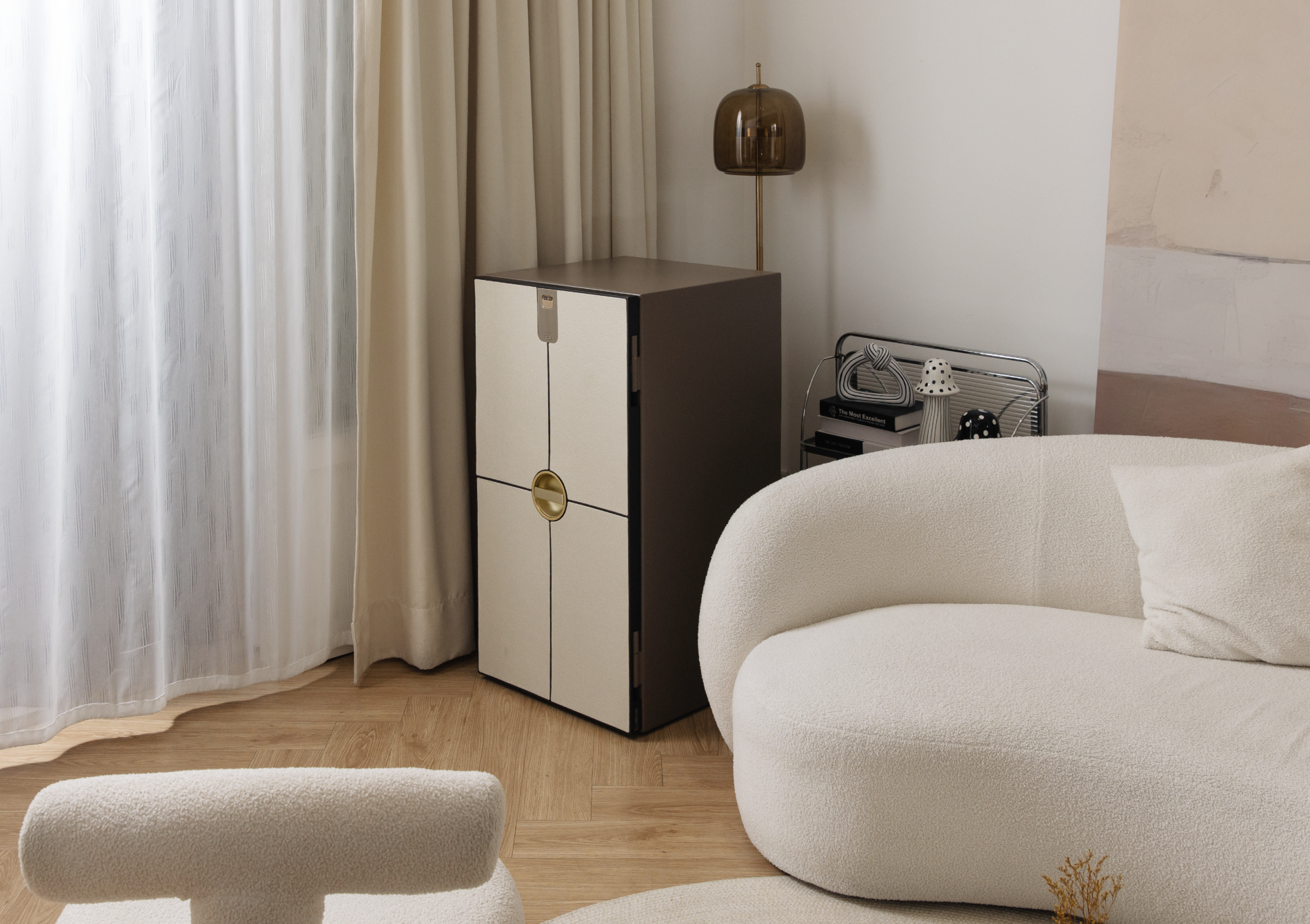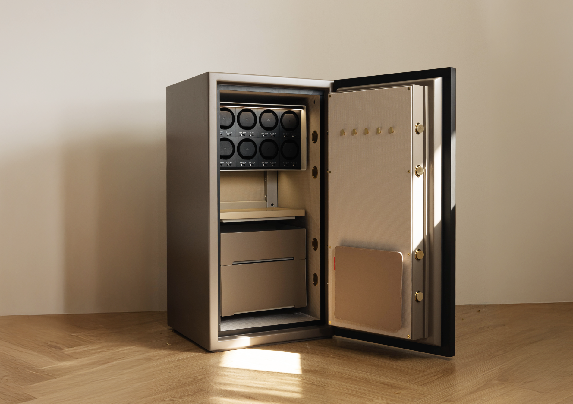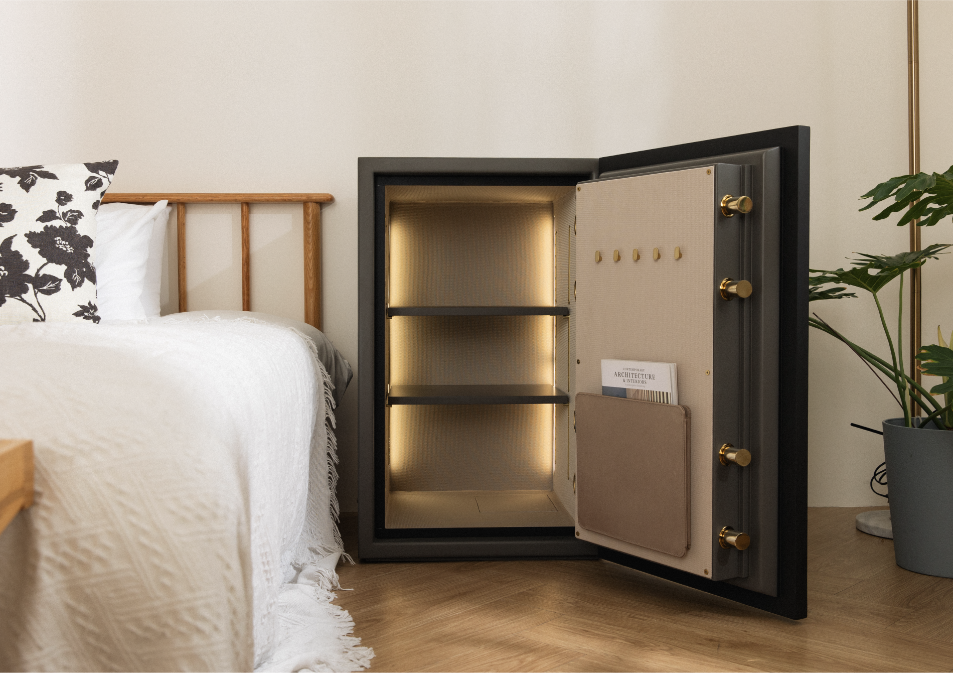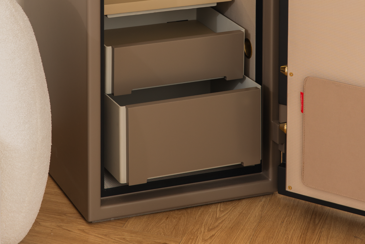 ESO 以簡約幾何語彙,詮釋安全與美感的極致結合,透過全平面設計與溫潤家飾布料,塑造精品家具般的質感。每一處細節皆經過精心設計,讓保險箱不只是安全設備,更是能與空間和諧共存的藝術品。
